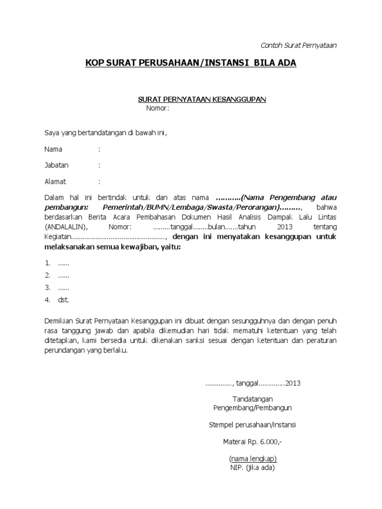Surat Kesanggupan Memenuhi Aspek K3 Dan Pengelolaan Lingkunga Hidup Serta Pengembangan Masyarakat Setempat from data03.123doks.com Berikut ini contoh surat pernyataan kerja yang dibuat oleh calon pegawi pada saat akan masuk menjadi pegawai perusahaan. Surat pernyataan adalah surat tertulis untuk menyatakan kesanggupan, kesediaan, kesepakatan, atau hal lain yang berkaitan dengan hal tertentu. Tidak pernah melakukan tindak pidana ataupun pelanggaran hukum yang lain. Contoh surat pernyataan kesanggupan menaati peraturan. Surat pernyataan kesanggupan merupakan surat pernyataan yang menunjukkan kesediaan nama terang. Peraturan perusahaan adalah peraturan yang dibuat secara tertulis oleh perusahan untuk mengatur karyawan ✓ yuk simak. Lihat 5 contoh surat pernyataan kesanggupan untuk memberikan kepercayaan bagi pihak yang bersangkutan dan (sumber: Tak jarang, surat semacam ini diperlukan dalam berbagai kebutuhan.