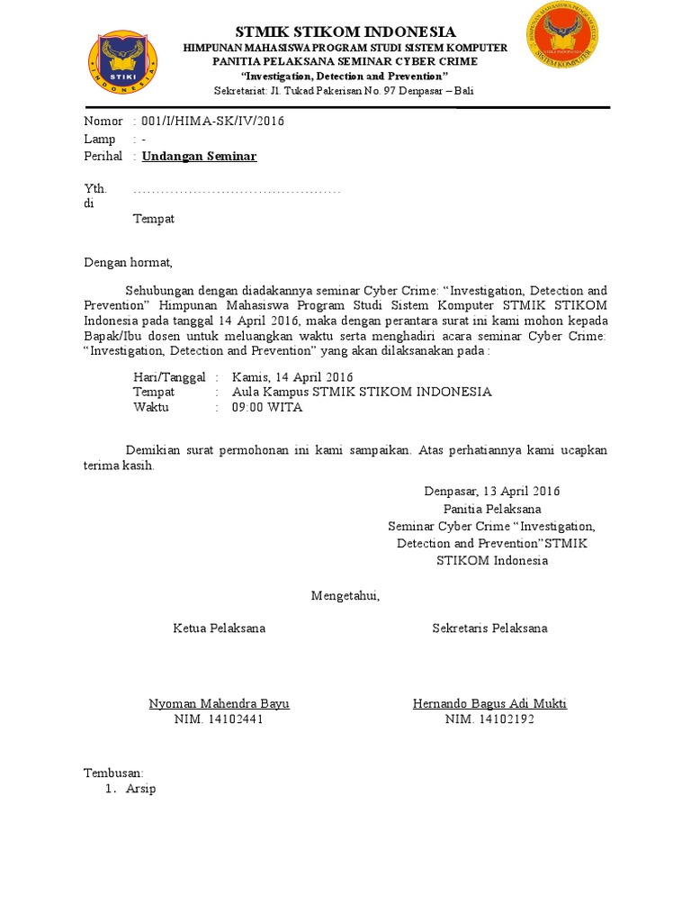 The collection that consisting of chosen picture and the. Silahkan download atau copy bahasa kalimat serta format contoh surat berikut ini. Download contoh surat undangan seminar untuk pendidikan. Sehubungan dengan kegiatan penyelenggaraan pameran international franchise, license, business concept, expo & conference (ifra) 2012. Yhaps untuk mengundang sesorang yang penting untuk menghadiri suatu acara dibutuhkan sebuah surat undangan resmi. Seperti halnya dengan namanya surat undangan ini digunakan untuk mengundang seseorang pada waktu, hari dan tanggal sesuai dengan yang ada di dalam surat. July 9, 2020 by nurul saputro. Contoh surat undangan resmi dinas, pernikahan, aqiqah, arisan. Menghadiri acara contoh surat undangan resmi. Contoh surat permohonan menjadi pembicara dalam suatu acara. Resmi yang baik dan benar update. Contoh surat undangan menghadiri acara perusahaan. Contoh surat undangan seminar versi ms.