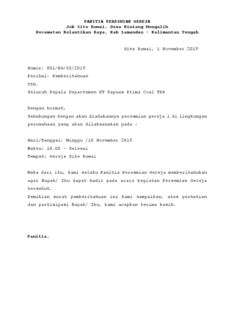 10 Contoh Surat Resmi Sekolah Yang Untuk Berbagai Kegiatan from i0.wp.com Sepro indotama surat pemberitahuan pindah alamat kantor a2k4 indonesia. Beberapa contoh dari surat undangan bersifat resmi adalah surat undangan rapat, pameran, pelatihan, rapat osis. Contoh surat undangan peresmian kantor. Dalam pelaksanaan suatu kegiatan rapat, kita tidak bisa begitu saja mengadakannya tanpa suatu pemberitahuan terlebih dahulu. Contoh surat undangan musyawarah desa. Kepada yth, bapak salman zulkifli. Isi surat, pada bagian isi surat ini memuat permohonan dan kegiatan apa yang akan berlangsung, jadi penerima. Kops surat, bagian ini merupakan bagian terpenting dalam surat resmi, karena pada bagian inilah menunjukan instansi surat undangan berasal.