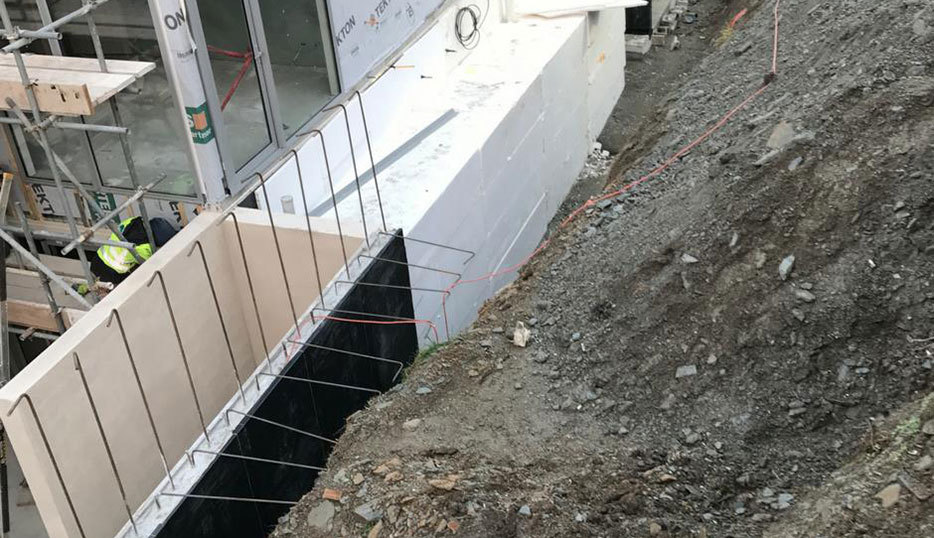 A waterproofing system integrated into the concrete structure.